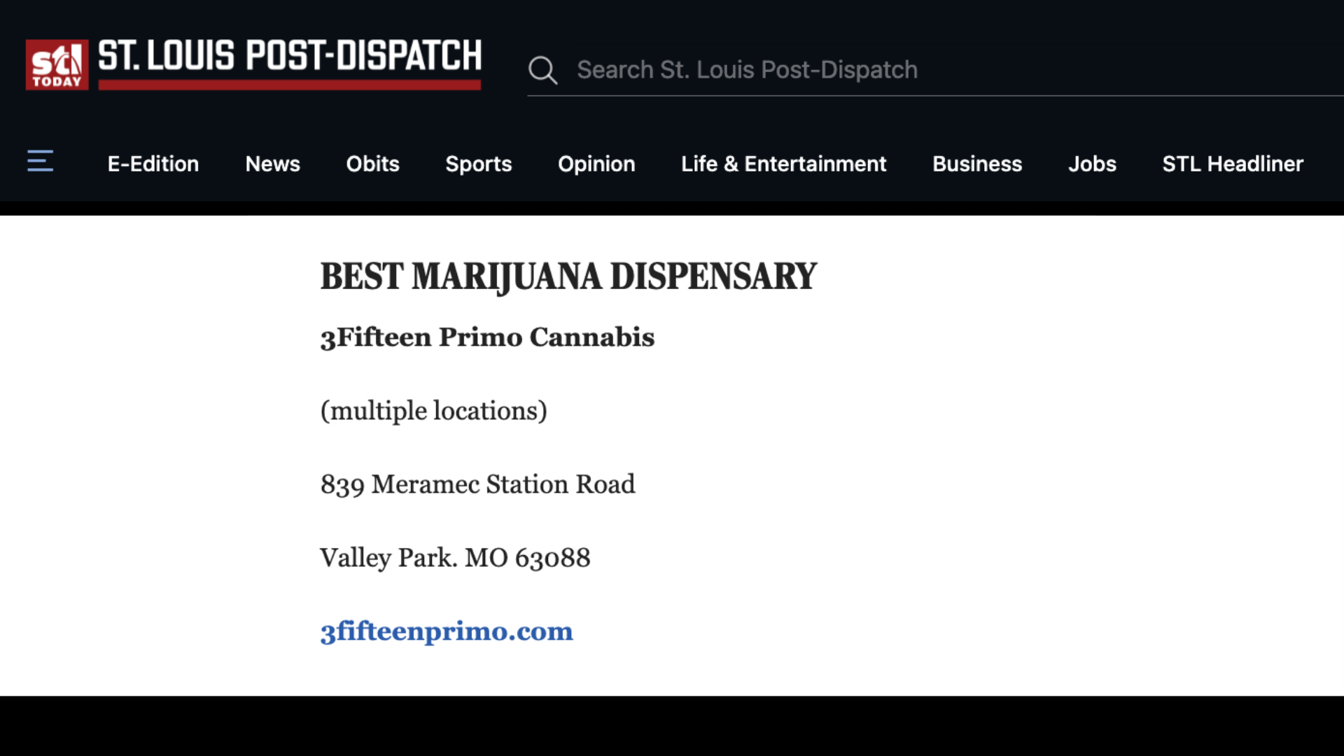 The STL Headliner Awards, hosted by STL Today, are an annual celebration of excellence across various industries, highlighting outstanding contributions and accomplishments. In the realm of health and medical cannabis, 3Fifteen Primo took center stage, securing the coveted title of the best dispensary in St. Louis. You can read more about this achievement on STL Today’s site here.
