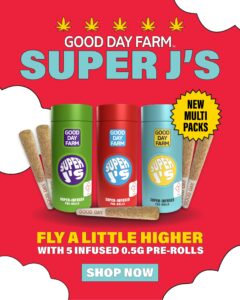 Double the fun with 2 GDF Infused Super J’s Multi Packs for $69! While supplies last. Select items only. Product availability may vary by location. Ask your budtender for details.