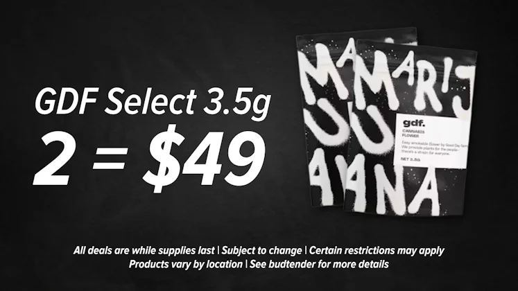 Snag 2 select eighths from Good Day Farm for just $49. Solid strains and smooth sessions. While supplies last! Select items only. Product varies by location. See budtender for details.