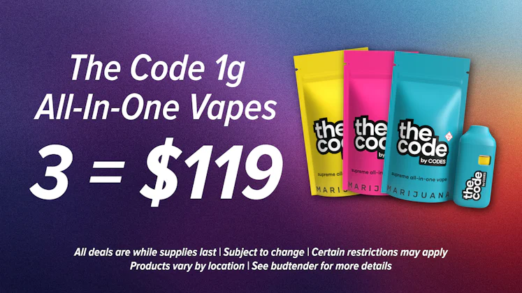 Snag 3 sleek, ready-to-rip All-In-One vapes for just $119. No hassle—just pure, potent vapor in a portable package. Pick your favorite strains and puff your way to the perfect high! While supplies last! Select items only. Product varies by location. See budtender for details.